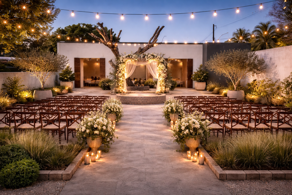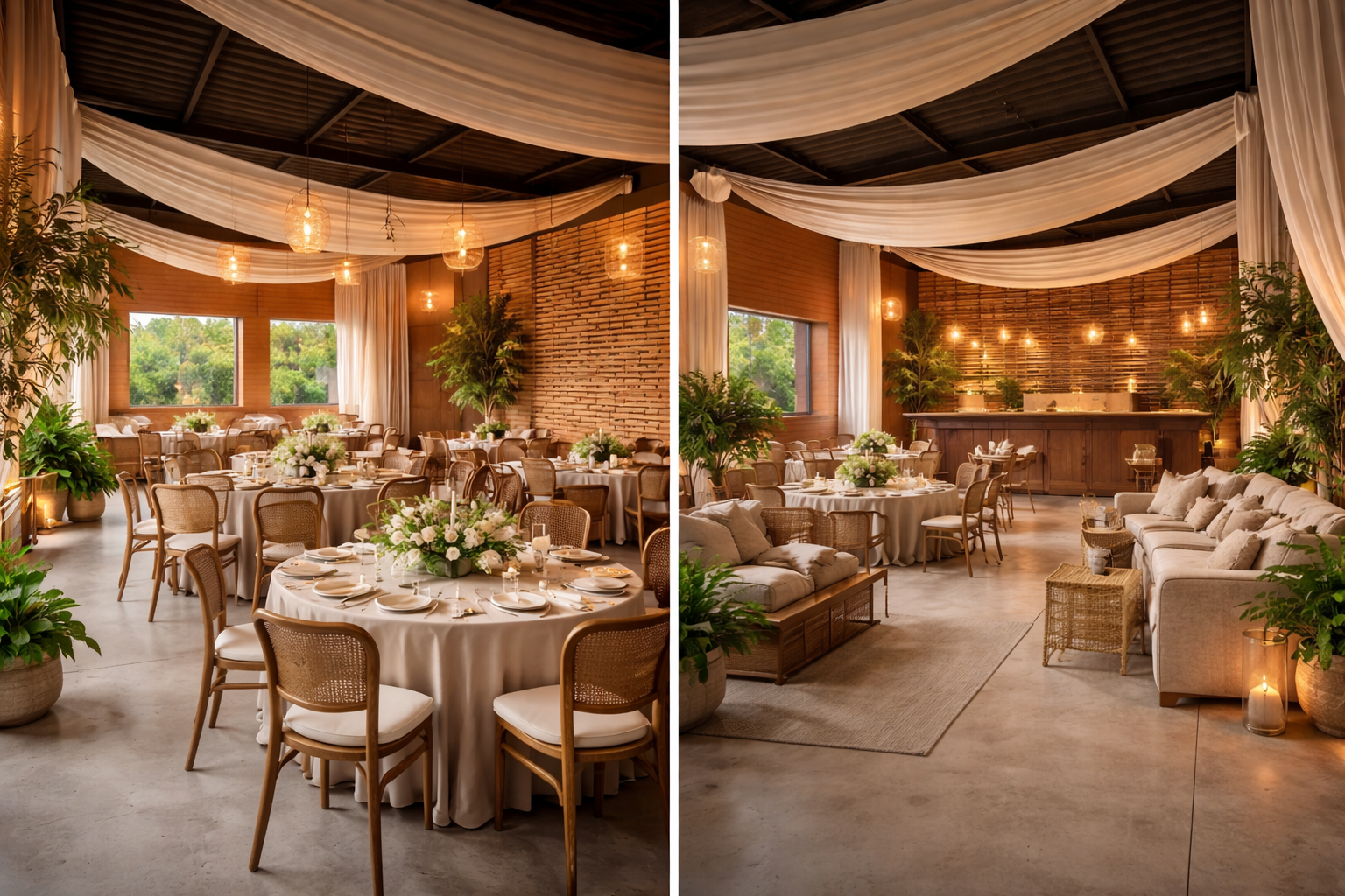 Áreas cobertas e descobertas com capacidade para mais de 200 pessoas.